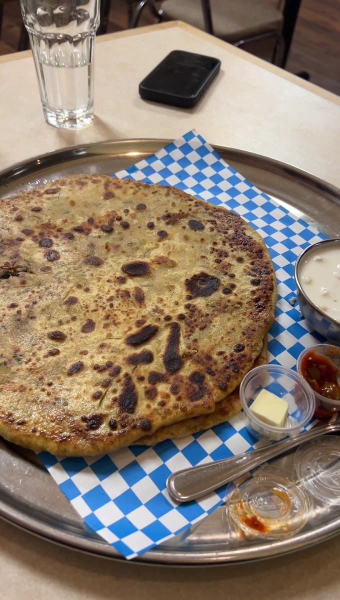 Besides the parathas, their menu includes classic Punjabi drinks like sweet and salty lassi as well as options such as samosas, pakoras, and warm chai—items that complement the rich, spiced mains well and round out the experience. The food tends to arrive piping hot, reinforcing the sense that each dish is prepared with attention, even during the quieter, less traditional dining hours.