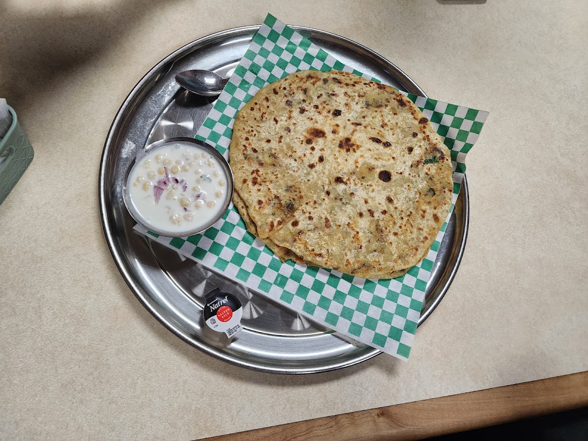 The atmosphere is casual and unpretentious—more about the food than frills—and the place operates 24/7, making it a practical choice for night owls or anyone looking for authentic Indian eats outside typical restaurant hours. Locals and visitors alike appreciate how consistently fresh and generously filled their parathas are, especially varieties like the aloo paneer or mixed options that come in sizeable portions, sometimes described as almost oversized for good reason.